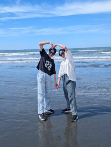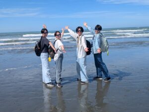 気温24℃ の初夏の海岸にはたくさんの人で賑わい、青空のもとビーチを歩きながらその美しさを思う存分に満喫しました。