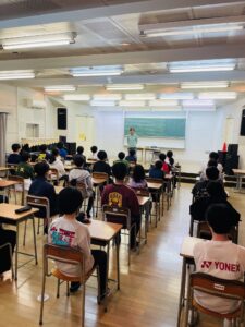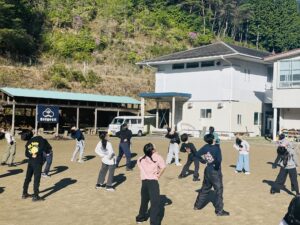 合宿研修2日目は7:30の朝の集いからスタート。